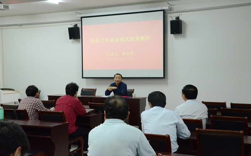 5月13日下午,省文化厅艺术(文化科技)处处长齐大伟应邀来到KY开元,作“国家艺术基金相关政策解析”专题讲座,艺术学院党委书记韩毅、副院长陈辉及全体教师聆听。