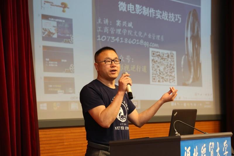 4月27日下午,工商管理学院文化产业管理系副主任、电影学博士窦兴斌,应宣传部邀请,在国际学术报告厅作题为《微电影制作实战技巧》的分享报告会。