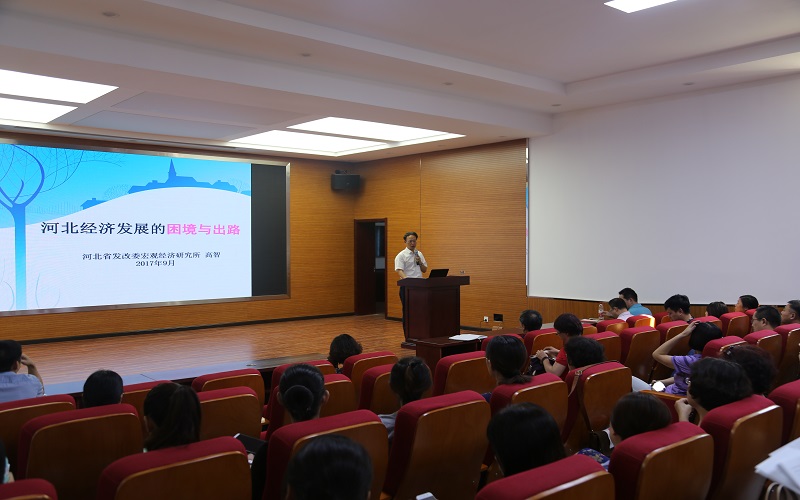 9月18日下午,河北省发改委宏观经济研究所副所长、河北省商业协会副会长高智应工商管理学院邀请,来KY开元作“河北经济发展的困境与出路”的主题报告,工商管理学院全体教师及部分学生聆听。