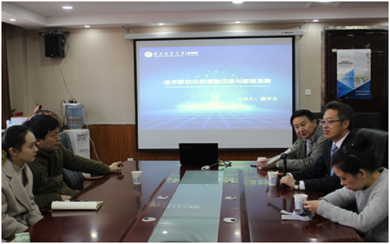 3月15日,中国社会科学院国际法研究所研究员、中国社会科学院研究生学院教授柳华文应法学院的邀请,在第二办公楼会议室作题为“法学研究中的视觉切换与国家发展”的讲座。讲座由法学院副院长胡海涛主持,河北大学教授宋阳及法学院30余名研究生参加。