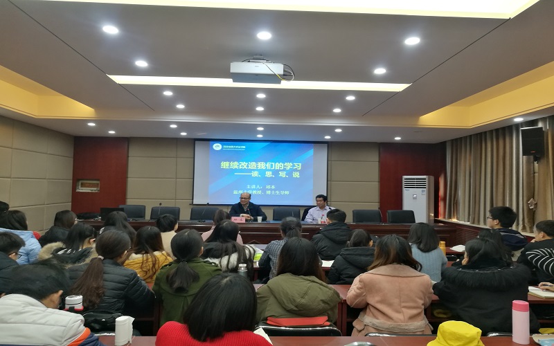 12月13日,温州大学教授、博士生导师邱本应法学院邀请,在法学综合实验教学中心报告厅作题为“继续改造我们的学习——读、思、写、说”的学术报告。报告会由法学院教授武建敏主持,学院70余名师生参加。