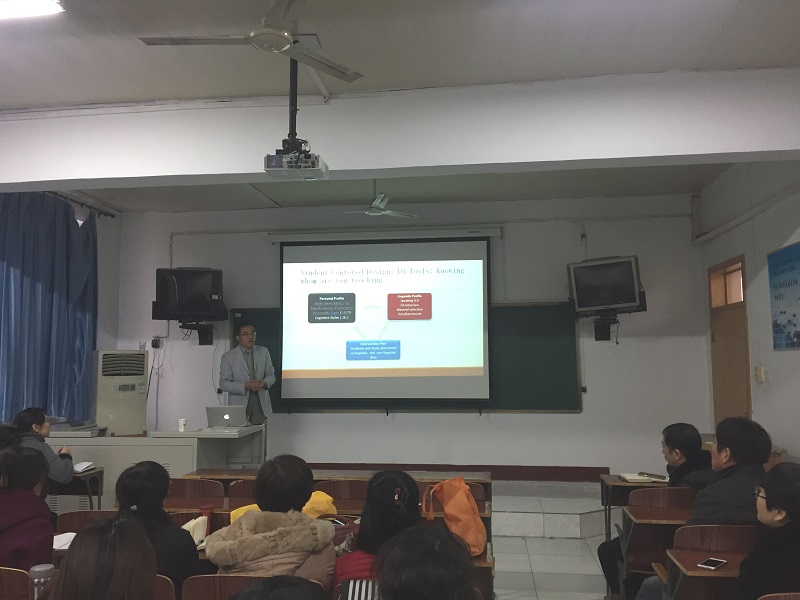 11月21日,美国蒙特雷语言学院谭捍卫教授应外国语学院邀请,作题为“二语习得的方法和策略”的学术报告。报告会由外国语学院院长王成云主持,全院教师聆听。