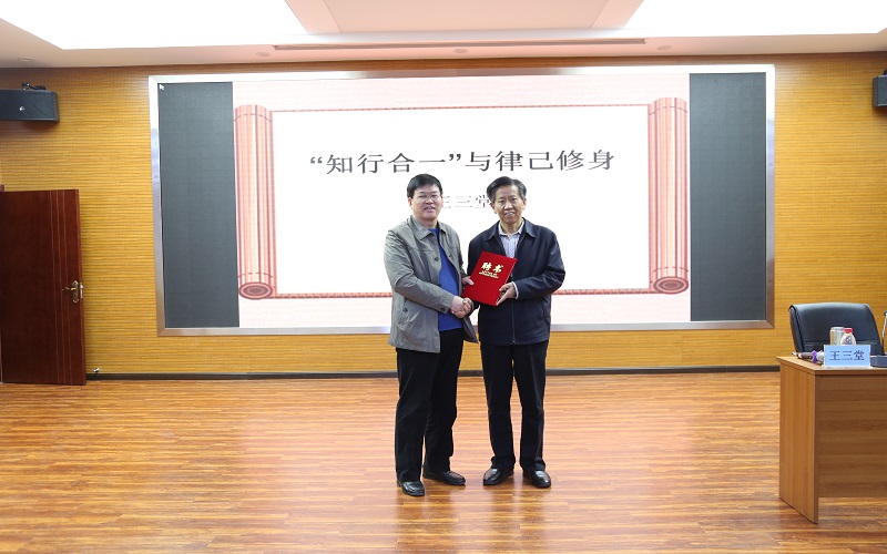 讲座前,纪良纲代表学校为王三堂颁发客座教授聘书。