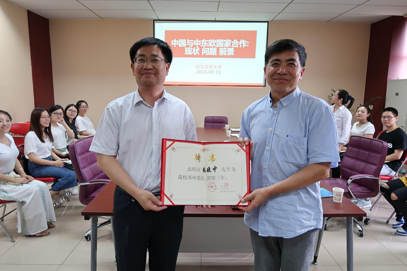 5月11日,中东欧国际商务研修学院举办第三期“中东欧研究论坛”。中国社会科学院俄罗斯东欧中亚研究所朱晓中教授应邀作“中国中东欧合作的几个问题”主题报告。校党委常委、中东欧国际商务研修学院院长陈亮出席并为朱晓中颁发客座教授聘书。论坛由中东欧国际商务研修学院常务副院长王成云主持,学院专家库成员、商学院、会计学院部分研究生聆听。