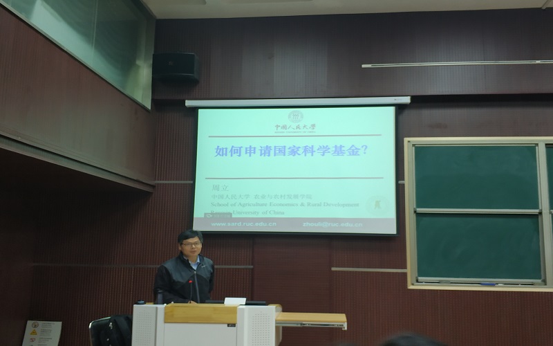 10月12日下午,中国人民大学农业与农村发展学院博士生导师、教授周立应金融学院邀请,在工商管理学院MBA教室作《如何申请国家科学基金》的专题辅导报告。金融学院院长王重润、副院长刘颖、金融学院全体教师及部分研究生40余人聆听了报告。报告会由学院副院长李建英主持。