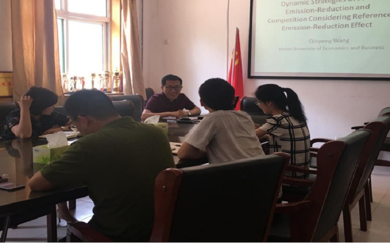 物流与供应链管理团队的王芹鹏博士作题为“考虑参考减排努力水平效应的联合减排与竞争动态策略研究”的工作论文报告。论文考虑参考低碳减排努力水平效应,构建了包括两个竞争的中小低碳代工制造商和一个品牌商的供应链,借助于微分博弈理论研究了联合减排和广告的动态策略与供应链协调问题,通过比较和数值分析为实现契约自执行性提供了转移支付的思路。孙天合、柴国俊等青年博士就本论文中斯塔克伯格模型中的数据含义、消费者的低碳偏好、低碳供应链及协调研究的现实意义等问题展开了热烈讨论,并给出建设性意见。