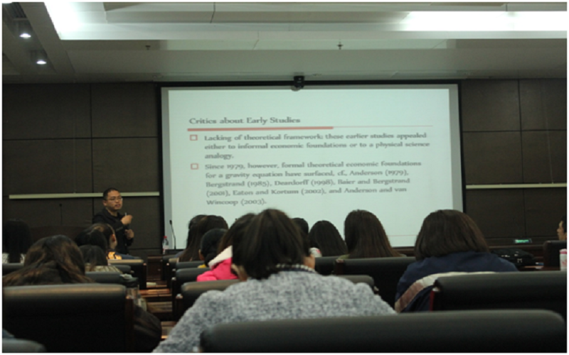 4月9日下午,中央财经大学林发勤副教授应商学院邀请,在第三会议室作题为“引力模型的理论基础和实证应用”的报告。报告会由商学院国际贸易系主任孟萍莉博士主持,百余名师生到场聆听。