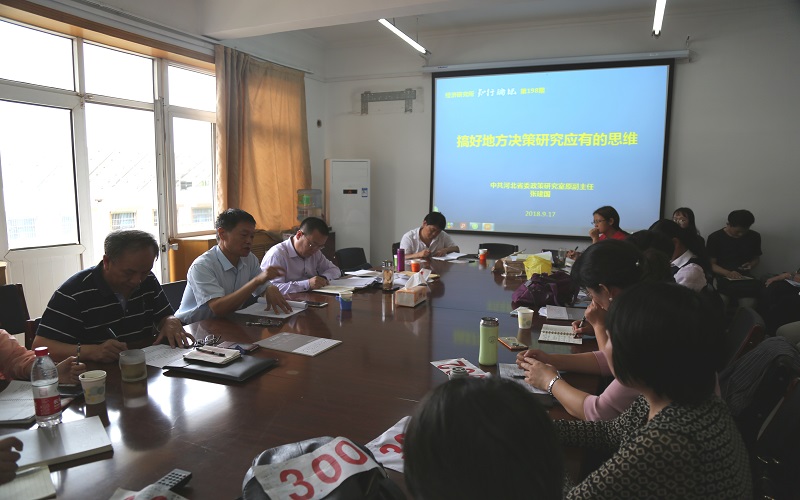9月17日,经济研究所举办第198期知行论坛,省委政策研究室原副主任张建国应邀作《搞好地方决策研究应有的思维》的专题报告。报告会后,校党委书记董兆伟与张建国进行了亲切交流。经济研究所、京津冀一体化发展协同创新中心全体师生参加。报告会由经济研究所负责人主持。