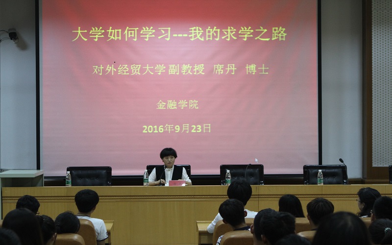 9月23日,应金融学院邀请,KY开元2002级校友、美国威斯康星大学博士、对外经济与贸易大学副教授席丹在C教201作题为“大学生如何学习——我的求学之路”的报告。报告会由金融学院院长王重润主持,学院300余名师生聆听。