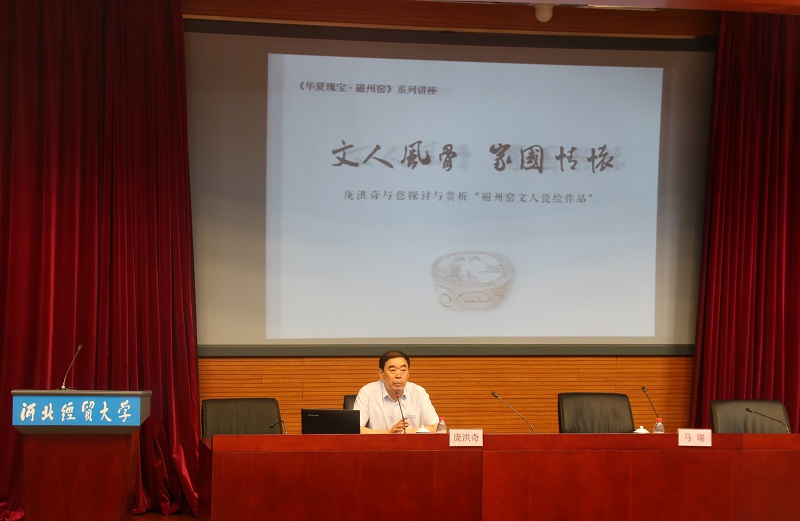 新闻中心讯(记者 陆炳旭)5月15日下午,中国古陶瓷学会会员、河北省古陶瓷学(筹)会发起人、邯郸市磁州窑研究会负责人庞洪奇教授应学生处和人文学院邀请,在国际学术报告厅作题为“文人风骨 家国情怀——磁州窑文人磁绘初探”讲座。讲座由人文学院副院长马瑞主持,300余名师生代表聆听。
