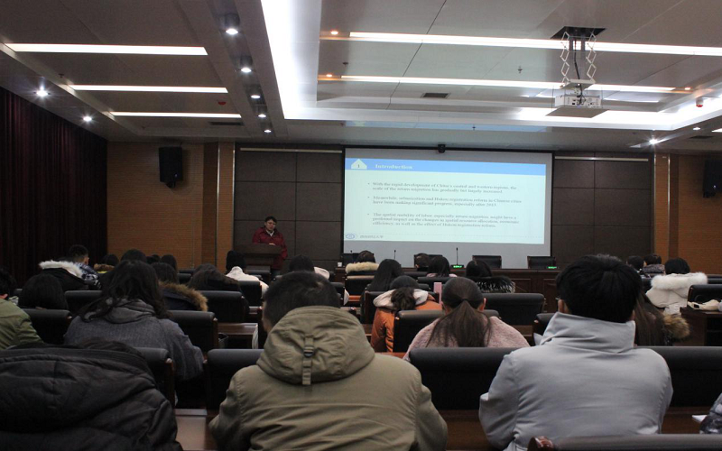 12月10日,西南财经大学教授张吉鹏应商学院邀请,在第三会议室作题为“中国城市的回流迁移与户口约束”的学术报告,学院80余名师生参加。报告会由柴国俊老师主持。