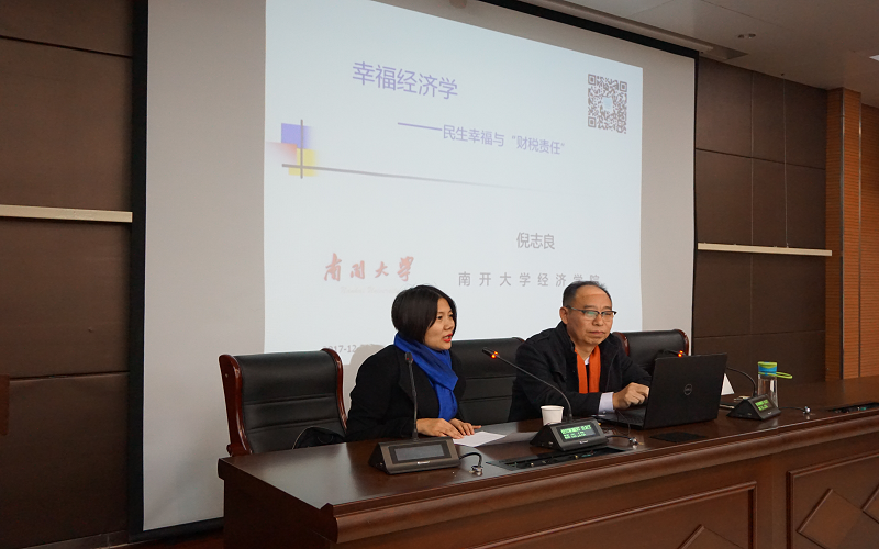 12月21日,南开大学财政系主任、博士生导师倪志良教授应财政税务学院邀请,在图书馆第三会议室作题为“《幸福经济学》——生命资源最优配置”的讲座。讲座由财政税务学院院长王晓洁主持,百余名师生聆听。