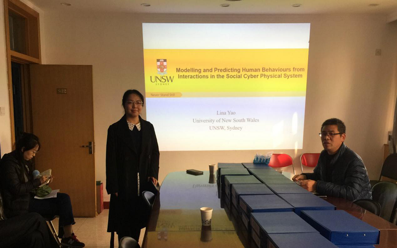 11月13日下午,澳大利亚新南威尔士大学姚丽娜教授应计算机中心邀请,在一办532计算机中心会议室作题为“从社会网络物理系统的交互建模和预测人类行为”的报告,计算机中心及信息学院近30名教师参加。报告由计算机中心副主任侯少杰主持。