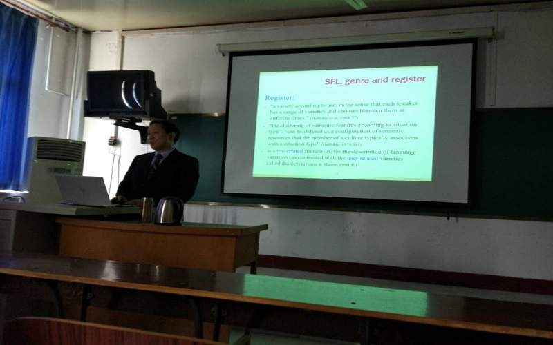 刘泽权教授从翻译理论出发、结合系统功能语言学理论,以自己的口译实践为例,生动解析了口译中的问题与翻译策略。刘教授的讲座视野宽阔,既有理论高度,又有很强的现实针对性和指导性,受到与会教师的热烈欢迎。