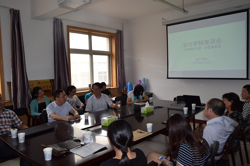 报告会结束后,田昆儒与部分教师进行座谈,就当前会计学科的评估问题、教学与科研的平衡问题、实践教学问题及服务社会过程中的实际问题进行了交流和探讨。(撰稿:会计学院 郜丽云 摄影:赵进亮)
