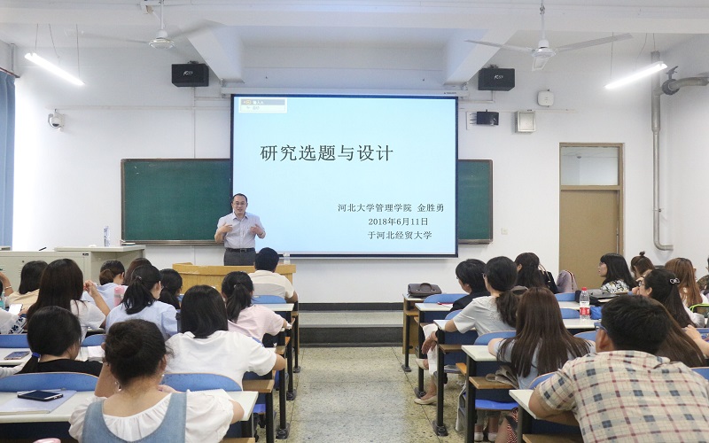 近日,河北大学管理学院副院长金胜勇教授应公共管理学院邀请,在A教107作题为“研究选题与设计”的学术讲座。学校部分教师及图书馆专业学生等百余人参加。