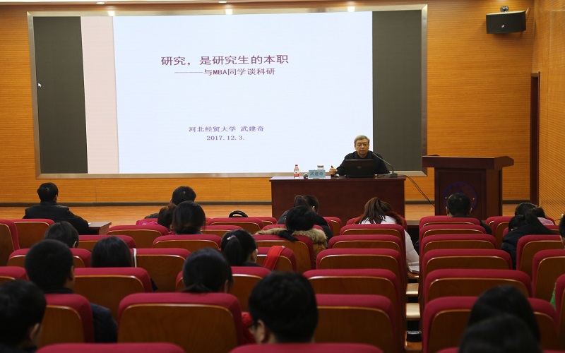 12月3日上午,工商管理学院邀请校党委常委、副校长武建奇教授作题为“研究,是研究生的本职——与MBA同学谈科研”的报告。报告会由工商管理学院副院长王胜洲主持,全体MBA研究生及部分全日制研究生参加。