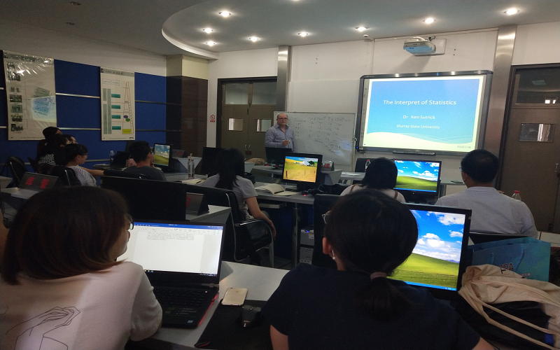5月30日上午,美国默里州立大学肯(Kenneth H. Sutrick)教授应数学与统计学学院邀请,在C411教室作题为“The Interpret of Statistics”的专题报告。报告会由数学与统计学学院院长梁建英主持,学院部分老师及研究生共30余人到场聆听。