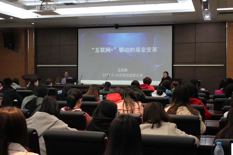 3月14日下午,商学院邀请东北财经大学工商管理学院教授、博士生导师汪旭晖在第三会议室作题为“‘互联网+’驱动的商业变革”的学术报告。报告会由商学院副院长戎素云主持,学院百余名师生到场聆听。