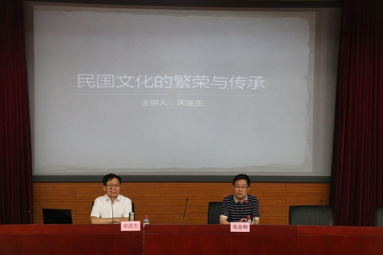 新闻中心讯(记者 孙梦莹)5月25日晚,央视《法律讲堂》主讲人、人文学院宋连生教授应学生处和人文学院邀请,在国际学术报告厅作题为“民国文化的繁荣与传承”的讲座。讲座由人文学院院长张金桐主持,学院300余名师生代表聆听。