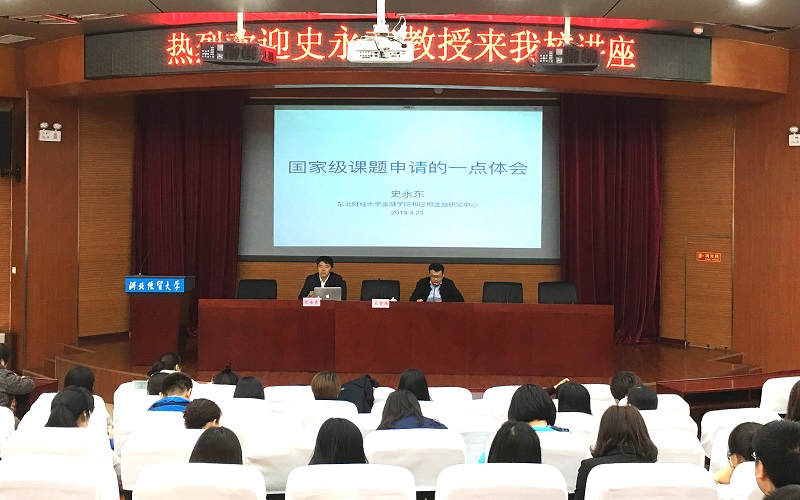 史永东结合自身申请国家级研究课题的经验,从科学研究的步骤、申请科研课题的途径及自然基金申请书的撰写三个方面,为青年教师介绍国家级课题申请中应注意的细节。史永东指出,青年教师在选题时应关注前沿学科课题,做好查新和调研工作。在申请书撰写时要做到论述研究背景简明扼要,有理有据;引用参考文献具有权威性和时效性;立项依据能体现明确的目的和充分的理由;要突出项目的特色与创新。他鼓励青年博士教师结合自身课题特点,选好方向,自信、积极地申报国家级课题项目。