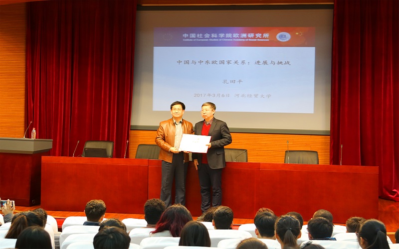 3月6日,应中东欧国际商务研修学院邀请,中国社科院孔田平教授在国际学术报告厅作题为“中国与中东欧国家关系:进展与挑战”的讲座。校党委常委陈亮出席并为孔田平教授颁发客座教授聘书。会计学院、商学院、外国语学院、国际教育学院的师生代表聆听了报告。