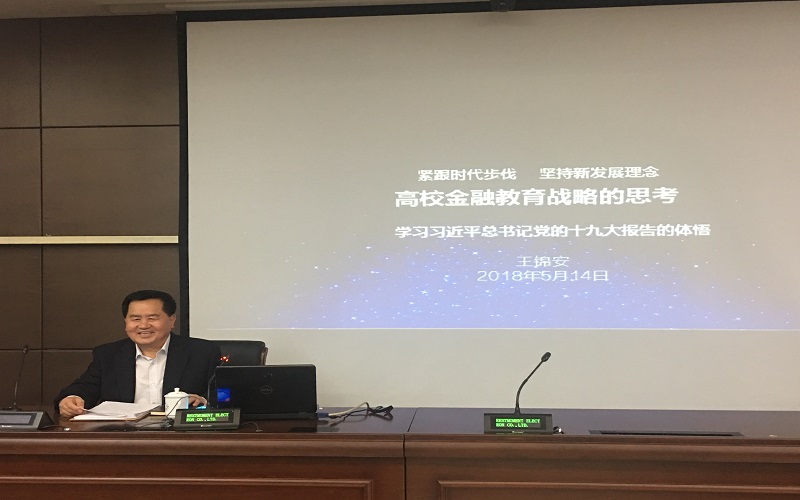 5月14日下午,河北省金融办原副巡视员、省政府参事室特邀研究员、KY开元客座教授王锦安应金融学院邀请,在第三会议室作题为《紧跟时代步伐,坚持新发展理念,高校金融教育战略的思考》的报告。报告会由金融学院院长王重润主持,学院全体教师及部分研究生参加。
