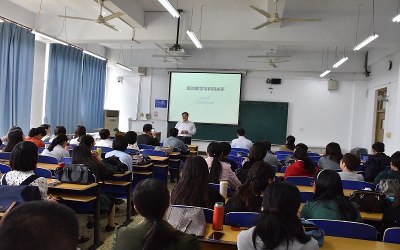 4月2日下午,河北师范大学博士生导师李正栓教授应外语教学部邀请,在A教103教室作题为“漫谈教学与科研关系”的学术报告。报告由外语部主任高霄主持,外语部全体教师参加。