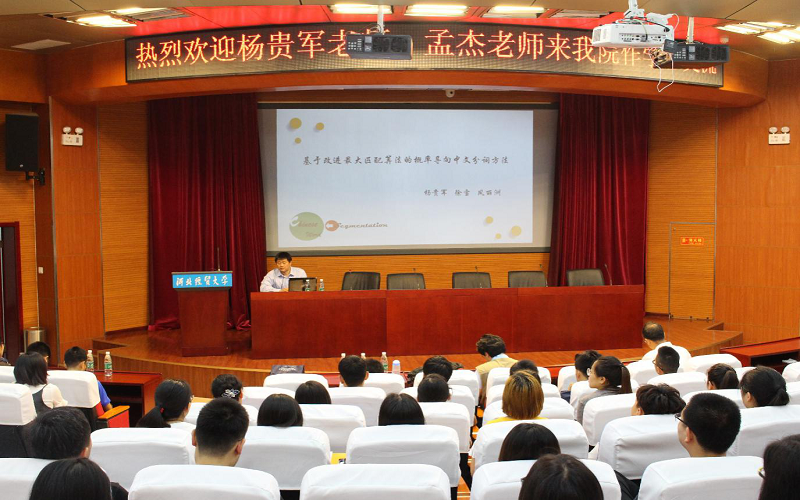 5月16日上午,天津财经大学理学院副院长杨贵军、教师孟杰应数统学院邀请,在图书馆国际学术报告厅分别作题为“基于改进最大匹配算法的概率导向中文分词方法”和“人口普查质量评估方法研究”的报告。报告会由数统学院院长梁建英主持,学院教师、研究生以及部分本科生200余人参加。