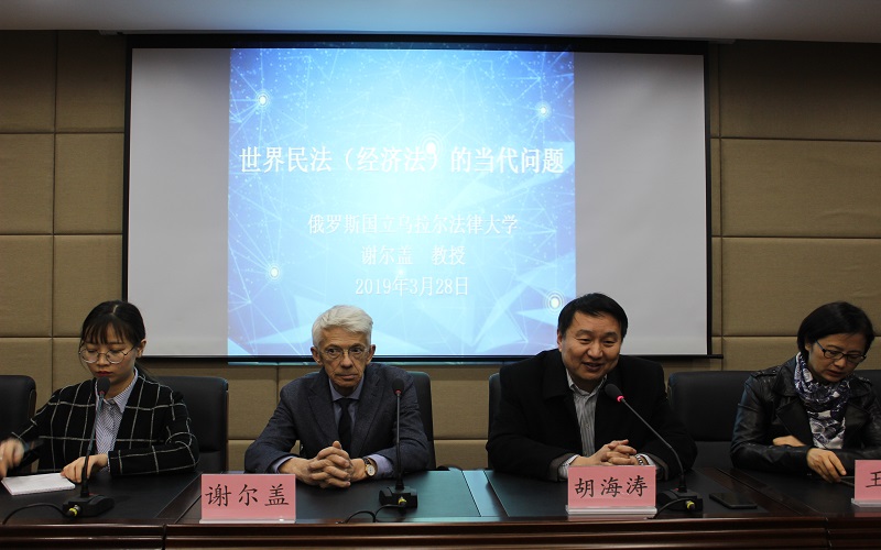 3月28日上午,俄罗斯国立乌拉尔法律大学谢尔盖教授应法学院邀请,在法学综合实验教学中心报告厅作题为“世界民法(经济法)的当代问题”的报告。报告会由法学院副院长胡海涛主持,北京联合大学应用文理学院法律系王平主任出席,法学院学生70人到场聆听。