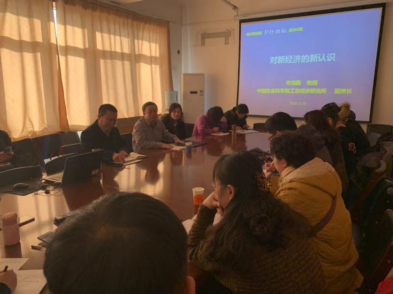 12月28日,经济研究所邀请中国社科院工业经济研究所副所长李海舰教授应邀来到KY开元,作题为《对新经济的新认识》的专题报告。报告会前,副校长武义青与李海舰教授会面并交流。报告会由经济研究所所长、京津冀一体化发展协同创新中心专职副主任田学斌主持,经济研究所、京津冀一体化发展协同创新中心全体教职工和研究生共计30余人参加。