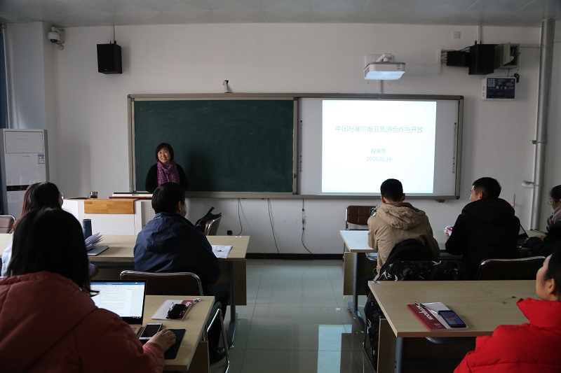 1月18日,中东欧国际商务研修学院举办第十期“中东欧研究论坛”。论坛邀请教务处处长程瑞芳作“中国与塞尔维亚旅游产业对接研究”主题报告。此次论坛由中东欧国际商务研修学院副院长刘海云教授主持,国际教育学院全体教师、中东欧国际商务研修学院专家库成员、塞尔维亚研究中心、旅游学院部分师生聆听。