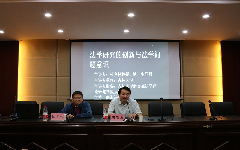 5月20日下午,吉林大学法学院副院长、博士生导师杜宴林教授应法学院邀请,在法学综合实验教学中心报告厅作题为“法学研究的创新与法学问题意识”的讲座。讲座由法学院副院长胡海涛主持,60余名法学院师生到场聆听。