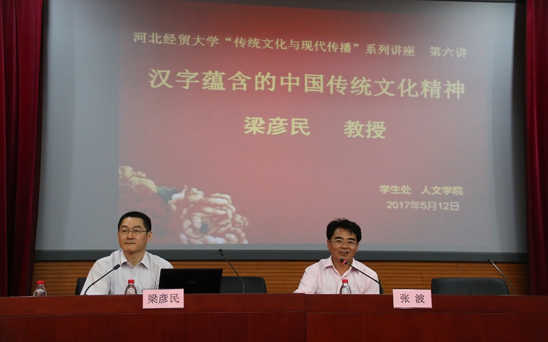 新闻中心讯(记者 李雪)5月12日下午,北京语言大学国际汉语教学研究基地副主任梁彦民教授应学生处和人文学院邀请,在国际学术报告厅作题为“汉字蕴含的中国传统文化精神”的讲座。讲座由人文学院副院长张波主持,300余名师生代表聆听。