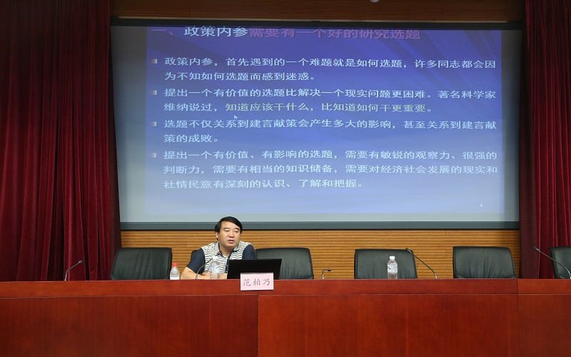范柏乃认为,提出一个有价值、有影响的政策内参选题需要有敏锐的观察力、洞察力以及相当的知识储备;选题后还需要采集坚实可信的事实数据;在数据的有力支撑下,进行数据的多方对比,最后提出可操作对策建议。针对青年教师关于跨学科政策内参选题报送问题,范柏乃认为不同学科交叉融合的情况越来越多,组建不同领域的专家学者团队共同研究选题对高质量报送政策内参十分重要。
