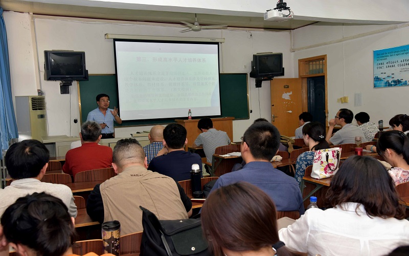 王树臣结合党的十九大对高等教育提出的新要求,对习近平总书记在全国高校思想政治工作会议、再访北大和在纪念马克思诞辰200周年大会上的重要讲话精神进行深刻解读。他指出,高校要坚持办学正确政治方向,要建设高素质教师队伍,要形成高水平人才培养体系。教师们要做到“教书和育人”“言传和身教”“潜心育人和关注社会”“学术自由和学术规范”的“四统一”,坚持传播马克思主义理论,培育和践行社会主义核心价值观,维护高校和谐稳定,培育良好的校风学风,成为塑造学生品格、品行、品味的“大先生”。