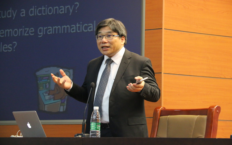 李锦昌教授以工作场合的英语、语言知识、商务语境下交往的关键因素和个案分析等内容为线索,从语言和语境相结合的角度讲解了商务英语的学习和使用,从国际视角分析了商务英语专业学生的未来发展方向和自我发展途径。