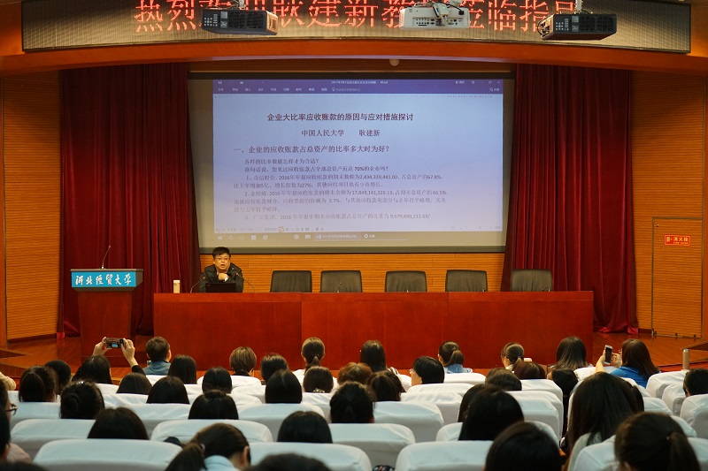 4月18日下午,中国人民大学商学院教授、博士生导师耿建新应会计学院邀请,在国际学术报告厅作题为“企业大比例应收账款的原因与应对措施探讨”的专题报告。报告会由会计学院院长袁振兴主持,学院部分教师、全体研究生及旅游学院的部分学生参加。