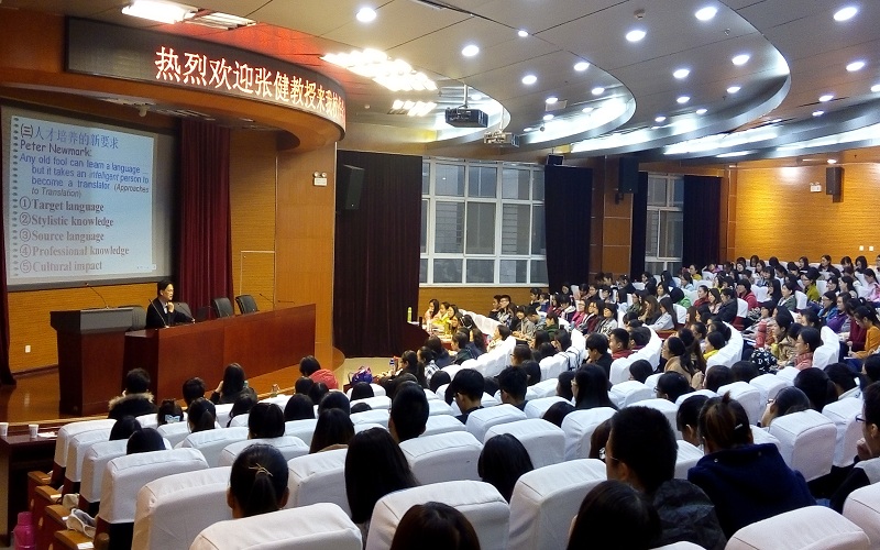 11月5日上午,上海外国语大学英语语言文学专业博士生导师张健教授应邀在国际学术报告厅作题为“新时代英语翻译人才的素养”的学术报告。报告会由外国语学院院长王成云主持,部分教师和学生近300人聆听。
