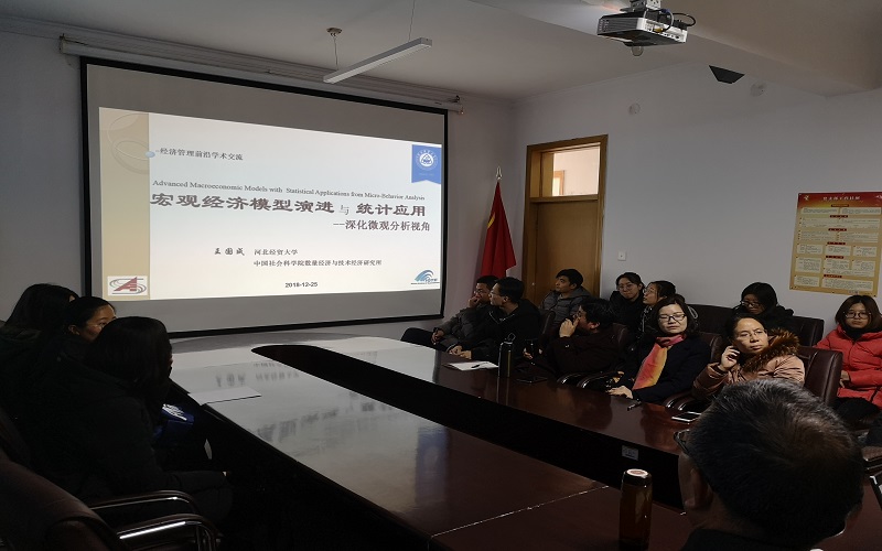 12月25日下午,中国社科院数量经济与技术经济研究所王国成研究员应数学与统计学学院邀请,在学院会议室作题为《宏观经济模型演进与统计应用》的报告。报告会由学院院长梁建英主持,近30名教师和研究生到场聆听。