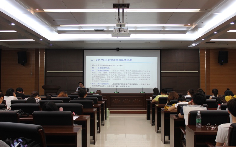 5月18日下午,中国经济体制改革研究会副会长、高级经济师刘万玲研究员应商学院邀请,作题为“宏观经济形势与河北改革创新研究”的学术报告。报告由商学院副院长戎素云主持。商学院近百名师生聆听。