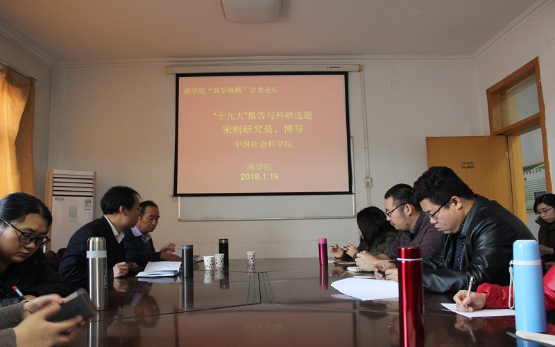 1月19日上午,中国社会科学院宋则研究员应商学院邀请,就十九大报告与科研选题和撰写决策咨询报告作辅导讲座和专题指导。讲座由商学院院长王小平主持,学院部分教师参加。