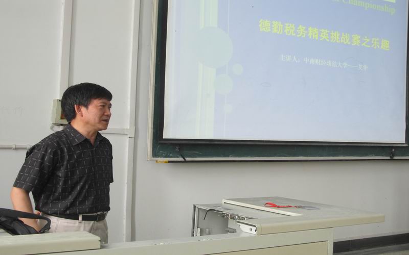 报告会上,艾华首先从哲学的角度,对个人兴趣与专业知识学习的关系进行了分析。他用幽默的语言和详实的案例对德勤税务精英挑战赛的基本形式、发展历程、比赛特点、举办意义及比赛的主要内容进行了介绍。艾华教授还与同学们分享了中南财经政法大学在历届德勤税务精英挑战赛中取得优异成绩的宝贵经验,他就参赛选手的选拔、备战的计划安排、比赛中的注意事项及参赛技巧对学院师生进行了指导。