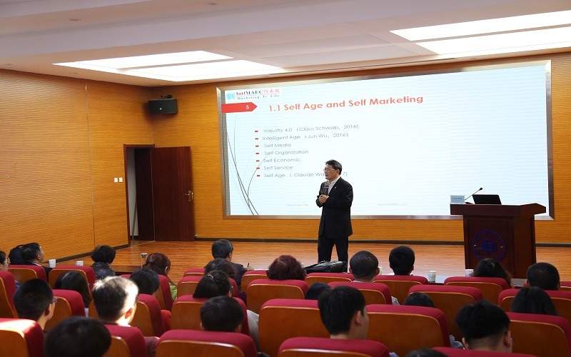 Claude Wang博士以“自营销+时代的发展”为题,从自营销的背景、自营销理论、如何进行自营销、自营销如何走进和改变市场、自营销的状况五个方面对自营销进行详细讲述,重点阐述了如何进行自营销,即“让营销成为营销”的深层含义。他指出,自营销时代已经来临,要加强自营销的教育与研究。互动环节,Claude Wang 博士就相关问题与在场师生进行了热烈探讨。