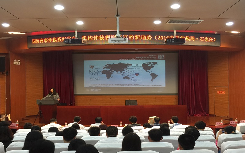 9月26日,“2016中国仲裁周”国际商事仲裁系列讲座石家庄专场在KY开元图书馆学术报告厅举行。英国品诚梅森律师事务所合伙人陈希佳作“机构仲裁规则修订的新趋势”主题讲座,法学院研究生、仲裁员及律师等240余人聆听。讲座由百盛律师事务所主任徐文莉主持。