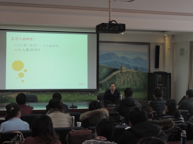 曾用强教授从“什么是研究”这一问题出发,结合具体案例介绍了研究的基本流程、研究课题的设计、研究思维的培养等内容。报告由浅入深、由微观到宏观,使在场教师对科学研究有了更深刻的认识。互动环节中,曾用强细致解答了老师们提出的问题。