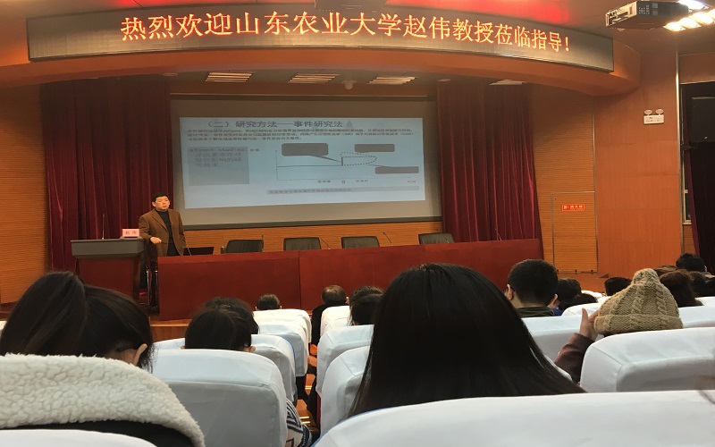 3月24日,会计学院邀请山东农业大学教授、博士生导师赵伟作关于“食品安全事件信息披露的有效性与传导性”的报告。报告会由会计学院副院长杨国莉主持,学院全体教师和研究生及部分本科生参加。