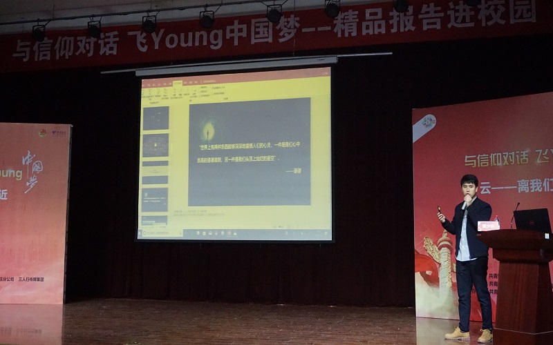 11月19日,以“云—离我们很近”为主题的“与信仰对话 飞Young中国梦”精品报告进校园讲座在KY开元大学生活动中心3号厅举办。中国电信云计算公司资深工程师、云专家贾少华主讲,各学院学生代表近300人参加。讲座由校团委副书记耿辉建主持。