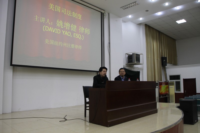 3月19日晚,应法学院邀请,美国新宇联合律师事务所主任、纽约州注册律师姚增健在模拟法庭作题为“美国司法制度”的学术讲座。讲座由副院长王利军主持,部分教师、研究生及本科生共计150余人聆听了讲座。