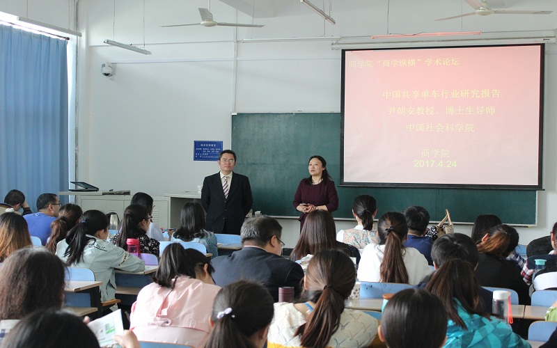 4月24日下午,中国社会科学院博士生导师尹朝安教授应商学院邀请,在第三教学楼B-302作题为“中国共享单车行业研究报告”的学术报告。报告会由商学院院长戎素云主持,学院师生代表聆听。